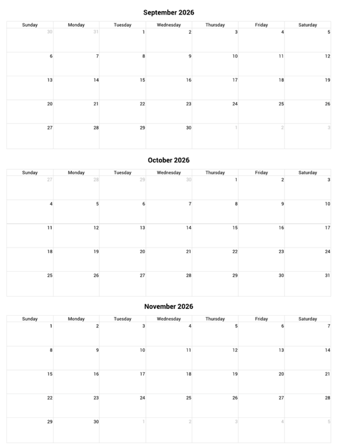 September-November 2026 scheduling